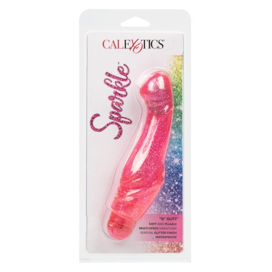 Розовый вибратор с блёстками G Glitz. Идеален для g-стимуляции. Мультискоростная вибрация. Рабочая длина - 16 см.