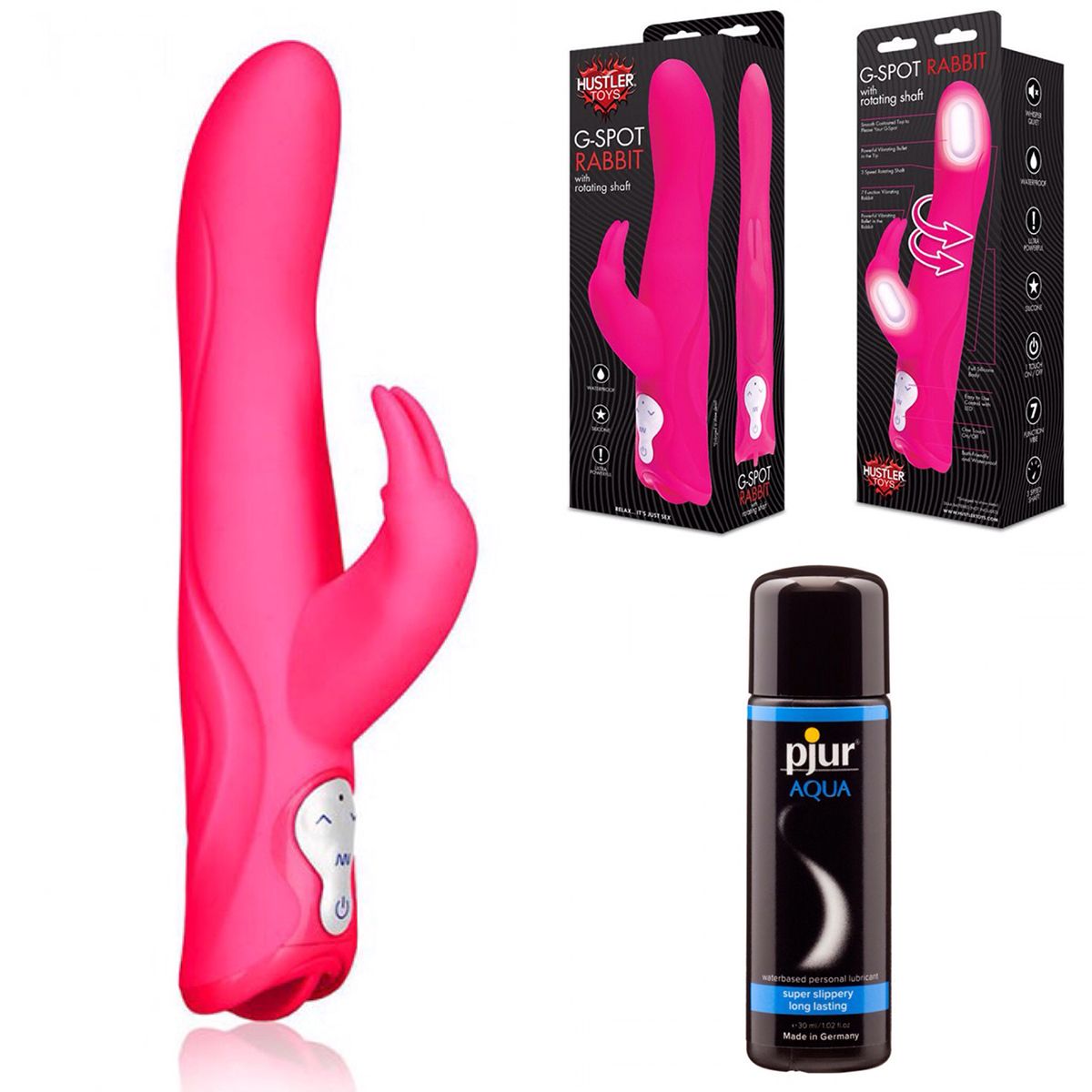 Smart Set №15: хай-тек вибратор и лубрикант на водной основе. Многофункциональный вибромассажер со стимулятором клитора розового цвета из приятного силикона наивысшего качества и загнутой головкой для стимуляции G-точки. Вибратор имеет функцию вибрации и 3 скорости ротации. Стимулятор клитора в виде зайки с ушками - три скорости вибрации. Рельефные впадины по бокам ствола доставят еще больше удовольствия. Водонепроницаемый. Лубрикант на водной основе. Качество говорит само за себя. Очень бережно отностися к слизистым оболочкам на микробиологическом уровне. Лубрикант увлажняет кожу, не делая ее липкой. Не содержит нефтепродуктов, масел, и парфюмерных добавок, что делает его особо нежной для вашей кожи и слизистых оболочек. Сверхмягкая формула с продолжительным скольжением питает и защищает сухую и поврежденную кожу. Будь то ежедневные ласки или регулярный уход за телом: pjur® AQUA всегда оставляет приятные ощущения. Объем флакона лубриканта - 30 мл. Длина вибратора - 25 см., рабочая длина - 13,5 см., диаметр - 3,5 см.
