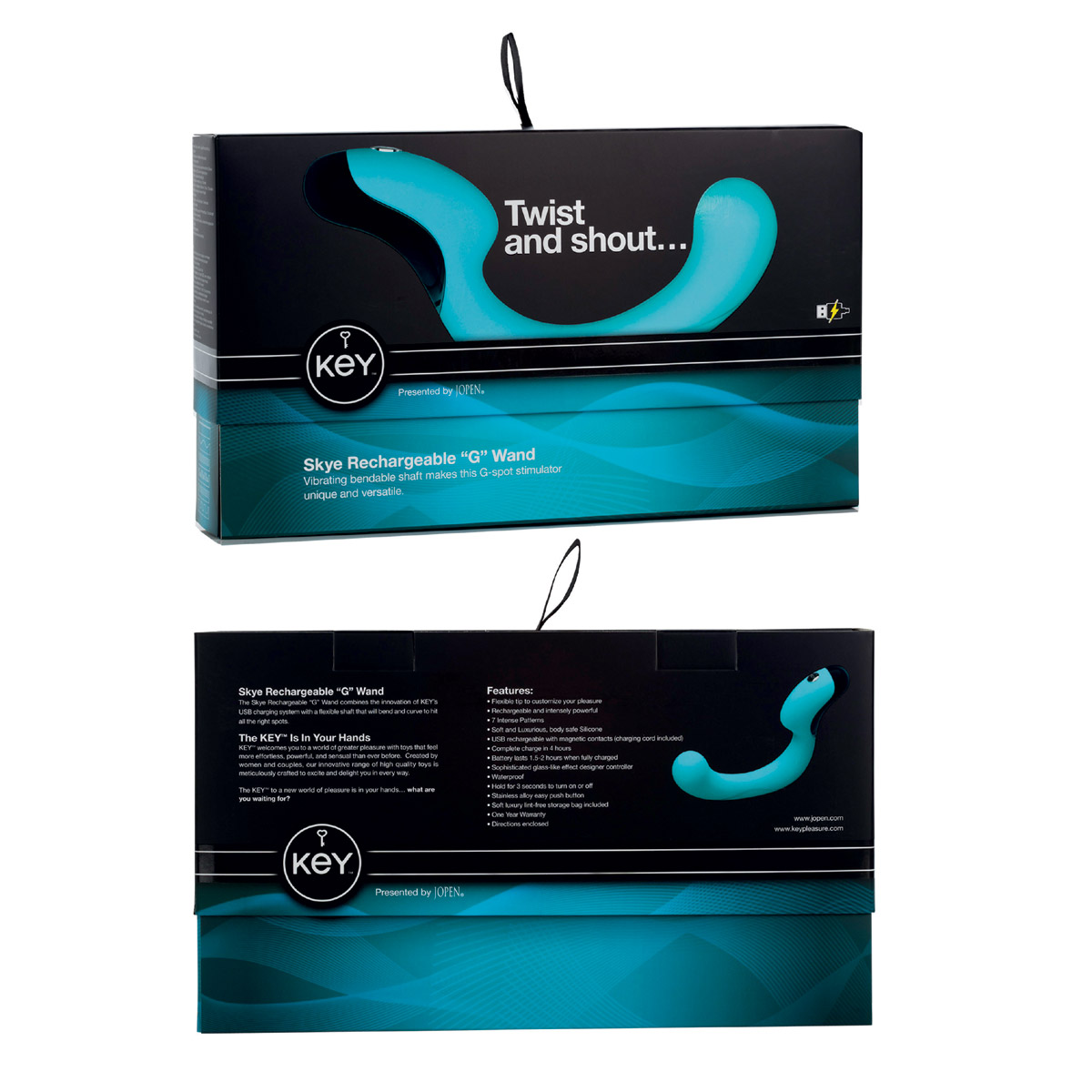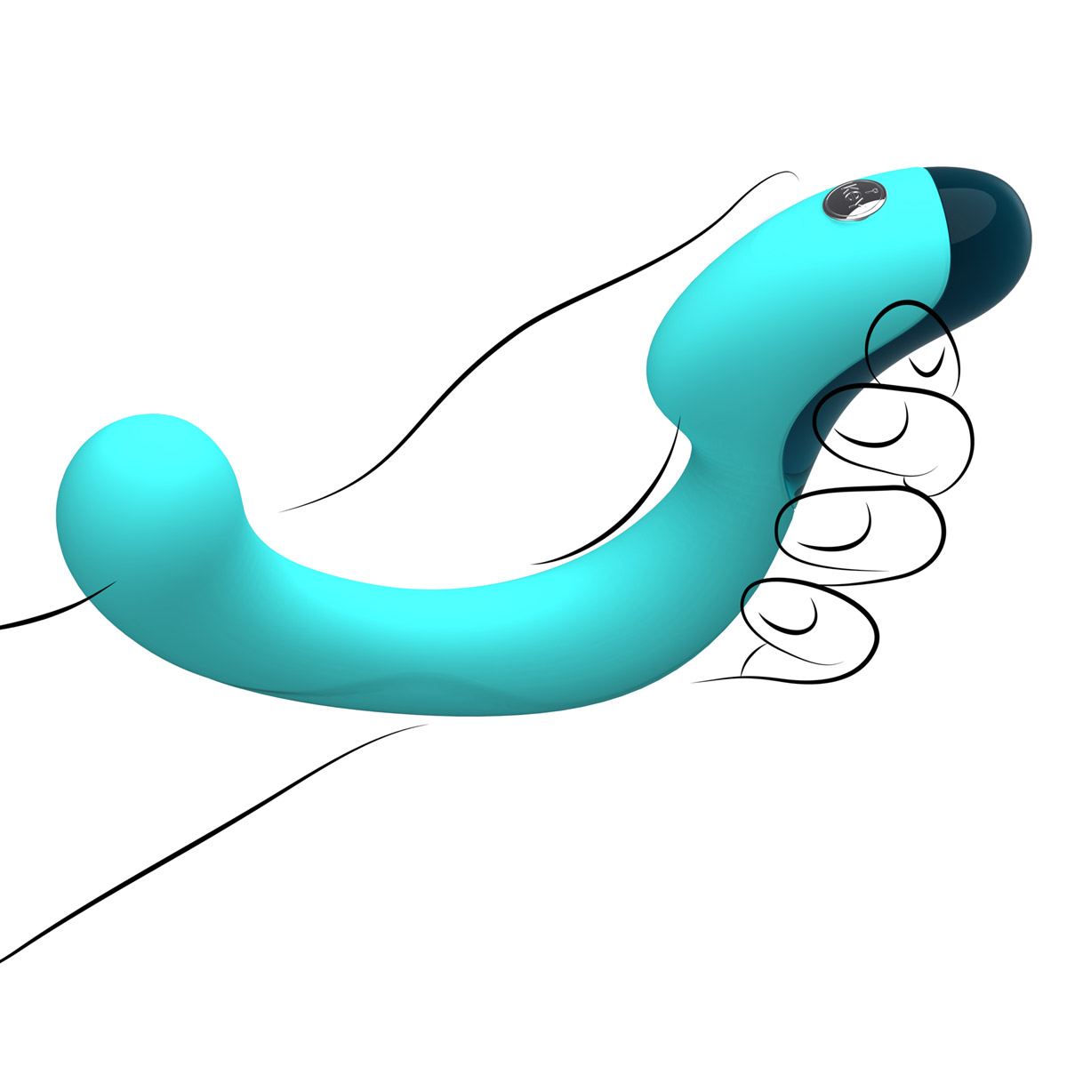 Перезаряжаемый вибромассажер G-точки SKYE бирюзовый – самый главный инструмент в достижении удовольствия. Плавно изогнутые линии повторяют женское строение. Округлая головка попадает точно в цель на скопление таинственных клеток, а верхний бугорок нежно массирует открытую зону удовольствия – клитор. Семь разных режимов вибрации позволяют достичь максимального наслаждения. • 7 интенсивных функций. • Мягкий, нежный, гипоаллергенный силикон. • Заряжается от USB, шнур с магнитными контактами в комплекте. • Полная зарядка за 4 часа. • При полной зарядке аккумулятора работает 1,5 - 2 часа. • Дизайнерская рукоять «под стекло». • Качественная кнопка-контроллер. • Для выключения кнопку задержать на 3 секунды. • Водонепроницаемый. • Мягкий чехол, не оставляющий ворсинок, в комплекте.