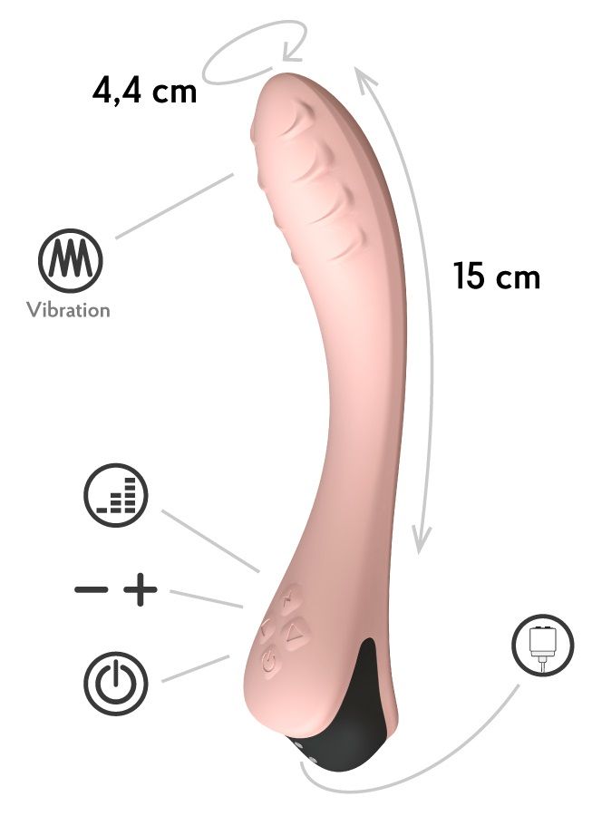 Нежный персиковый вибратор Apus способен прочувствовать и промассажировать всю внутреннюю поверхность влагалища и особое внимание уделить точке G. В этом тихом, но мощном гаджете 8 режимов вибрации для постепенного повышения градуса возбуждения и отдельная кнопка погружения в пучину оргазмических ощущений. Идеально гладкий гнущийся ствол с естесственным загибом, выполненный из полностью безопасного силикона удобен как для соло, так и для совместной чувственной игры. Не отказывай себе в удовольствии! Рабочая длина - 15 см. Время зарядки - 2 часа. Время работы - 2 часа.