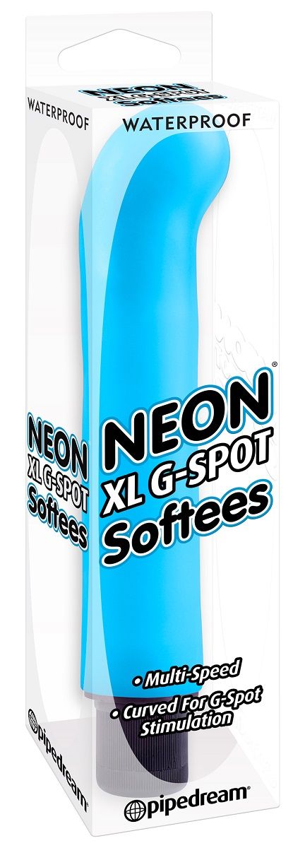 Голубой вибромассажер с загнутым кончиком XL G-Spot Softees. Мультискоростной. Идеален для G-стимуляции.
