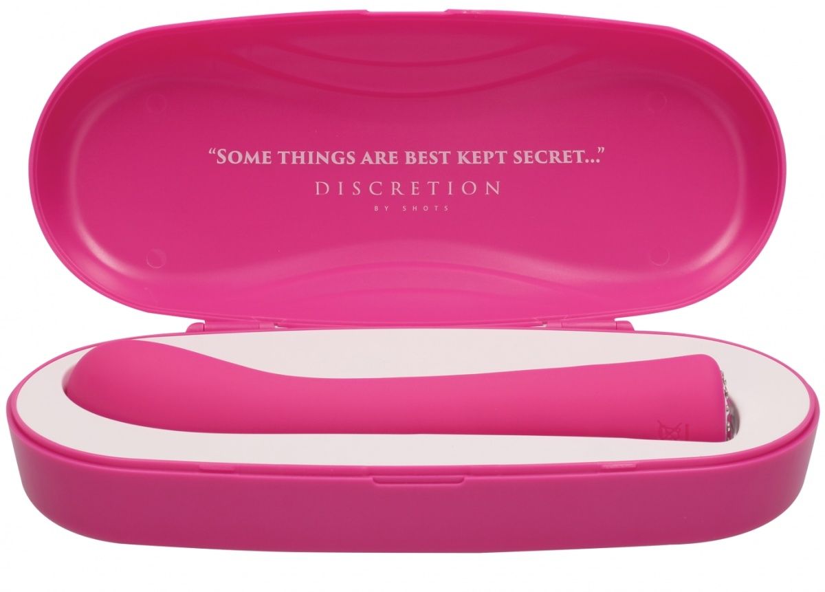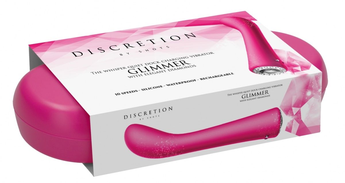 Glimmer - вибромассажер для точки G с инновационным электродвигателем нового поколения F1. Он делает интенсивную стимуляцию очень мягкой даже при мощном максимальном воздействии. Игрушка имеет 10 режимов вибрации, способной достигать 8500 оборотов в минуту. Вибромассажер имеет выпуклую, изогнутую головку. Очень гибкая и эластичная, она может гнуться на 36 градусов. Discretion представляет собой сочетание высоких технологий и роскоши ювелирных украшений. Эта изящная интимная игрушка оснащена на манер современных электронных устройств. Вместо обычной коробки все изделие представлено в стильном компактном портативном кейсе в оттенке самого девайса. Абсолютно гладкая и обтекаемая поверхность имеет кнопки управления из сверкающих кристаллов, имитирующих бриллианты. Ещё одним преимуществом является полная водонепроницаемость. Рабочая длина - 14 см.