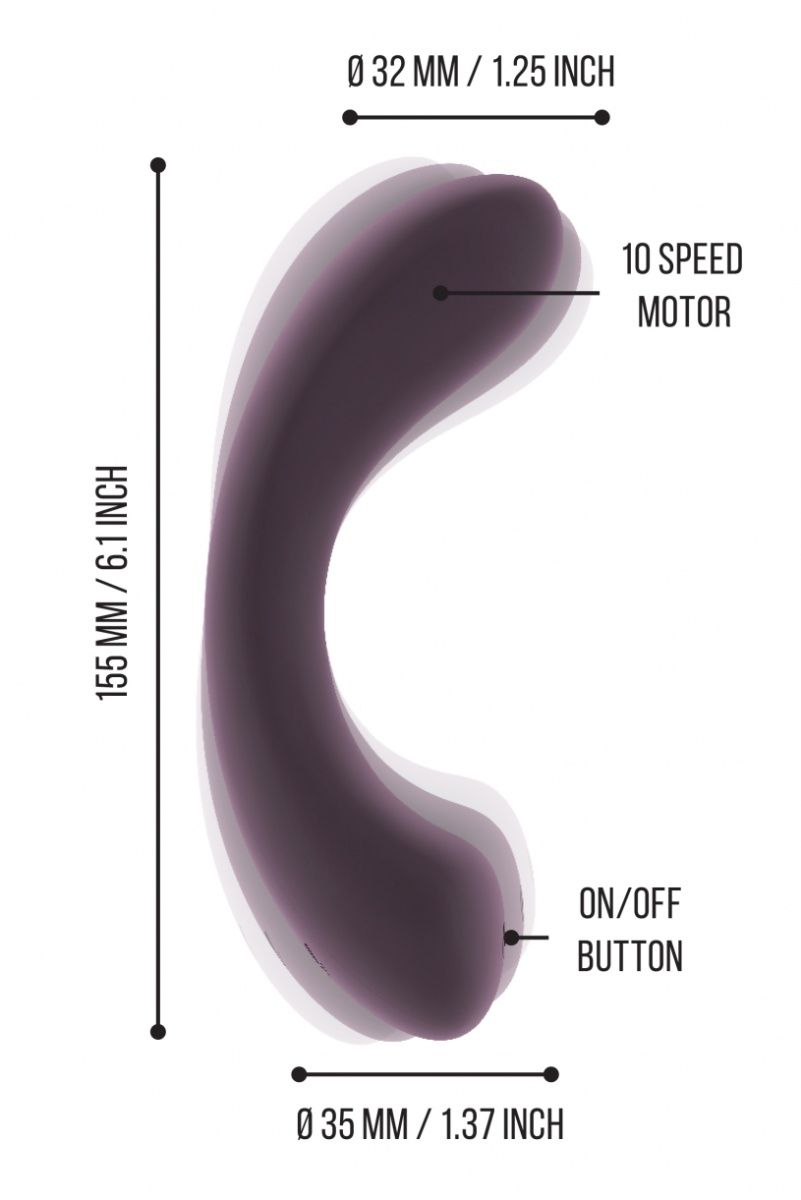 Очень гибкий вибратор из нежного силикона, который быстро достигает температуры тела. Идеально подстраивается под формы вашего тела. Очень тихий и очень мощный мотор с десятью режимами вибрации. Время зарядки - 3,5 часа. Время работы - 1 час.