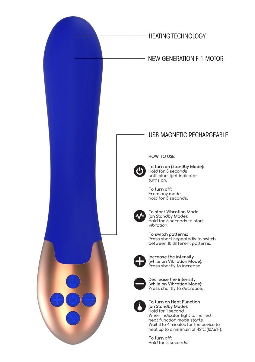 Синий вибратор с функцией нагрева Shots Media BV Posh ELE001BLU (20 см)
