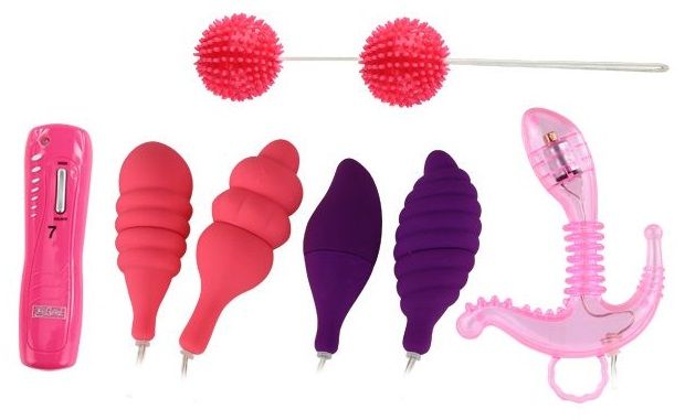 Вибронабор Climax Combo: вагинальные шарики, 5 стимуляторов и пульт-контроллер. Диаметр шариков - 3 см. Длина розового стимулятора с широкой головкой - 9,1 см., диаметр - 3,1 см. Длина розового стимулятора с узкой головкой - 9,8 см., диаметр - 3,2 см. Длина фиолетового стимулятора-капельки - 8,5 см., диаметр - 3 см. Длина фиолетового стимулятора со спиралью - 8,5 см., диаметр - 3,2 см. Длина фигурного стимулятора - 12,7 см., рабочая длина - 8,1 см., диаметр - 2,5 см.