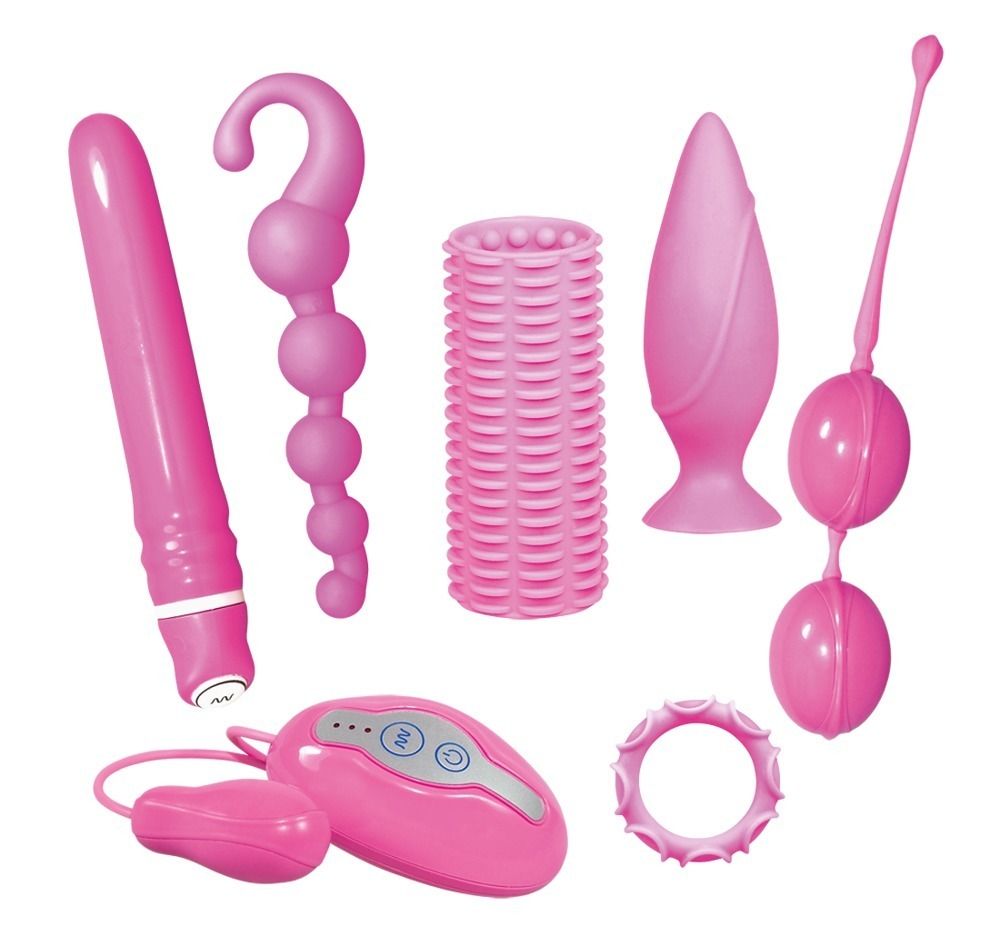 Уникальный набор, при помощи которого вы сможете кардинально изменить свою интимную жизнь. Также данный набор идеально подходит для подарка. В комплект входят: 1. Рельефная растягивающаяся насадка для мужского полового органа. 2. Вагинальные шарики. 3. Классический вибратор. 4. Эрекционное кольцо. 5. Цепочка шариков с петлей. 6. Анальная пробка на присоске. 7. Виброяйцо. Длина насадки на член - 10 см. Диаметр вагинальных шариков - 3,3 см. Длина вибратора - 16 см., диаметр - 2,4 см. Диаметр анальной цепочки - 3 см. Длина анальной пробки - 10 см., диаметр - 3 см. Длина виброяйца - 5 см., диаметр - 2,5 см. Батарейки в комплекте.