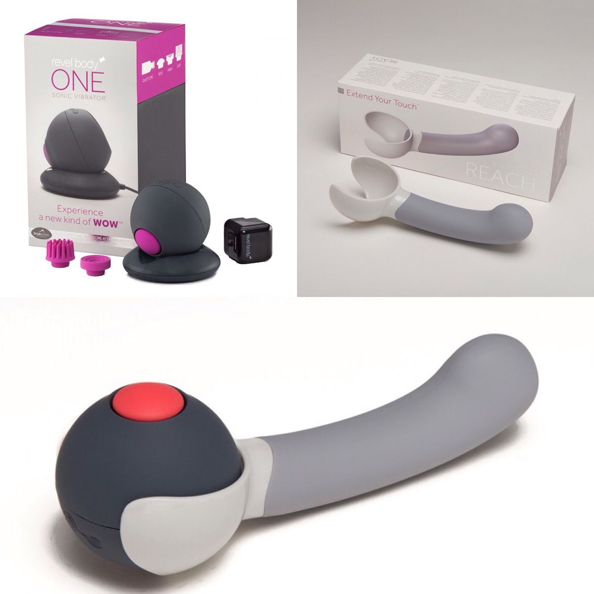 Smart Set №13: пульсатор Revel Body One и серая насадка Reach. Почувствуй себя обновленным, заряженным энергией и умиротворенным c Revel Body One - младшим братом Revel Body SOL, с первым в мире массажером, который работает с частотой энергии ОМ. Вибрация ОМ пробуждает сексуальную энергию, делает интимные ощущения ярче, снижает чувство стресса и волнения, обновляет душу, мысли и дух. Помимо этого вибратор создает вакуумный эффект под водой! Для этого всего лишь необходимо включить вибратор в воде, выбрать комфортную скорость вибрации и плотно прижать массажер к телу обратной стороной. Теперь бесконтактная стимуляция клитора в воде - это реальность! Массажер 100% водонепроницаем, выполнен из силикона и пластика без фталатов, никеля или свинца. Магнитный пульсатор работает от перезаряжаемого аккумулятора LiPo (заряжается от USB), имеет 6 скоростей вибрации. Сердечник левитирует в корпусе массажера в магнитном поле. Массажер имеет четко направленную вибрацию, не тратя ее попусту. Мощный двигатель будет стимулировать ту зону, на которую Вы направите его работу, ни капли бесполезной вибрации! Самая мощная вибрация находится на 3 скорости пульсатора. Вторая скорость соответствует базовой ступени энергии ОМ, четвертая - низкой ступени энергии ОМ, а 6 скорость - средней ступени энергии ОМ. В комплекте - зарядное устройство от USB, 3 сменные насадки - rose, fawn, ever, удобную упаковку Revel Body One можно использовать как кейс для хранения. В комплекте адаптер для зарядки от сети с американским разъемом, для подзарядки от сети необходим дополнительный переходник на евростандарт. Revel Body уникальный вибратор для всего тела! Насадка Reach выполнена из высококлассного силикона благородного цвета. Насадку рекомендуется использовать одновременно с насадкой rose или fawn, которые есть в комплекте любого массажера Revel Body. Установив насадку на сферу вибратора не закрывая магнитный сердечник позволит использовать ее как простую рукоять, но главное предназначение насадки - это вибрационная стимуляция точки G. Необходимо просто установить насадку на любую из сторон магнитного сердечника, и Вы получите мощнейший и полностью водонепроницаемый вибратор! Самая мощные колебания, передающиеся насадке от магнитного сердечника соответствуют третьему режиму работы любого Revel Body. Длина насадки - 14 см., диаметр - 3-4 см.