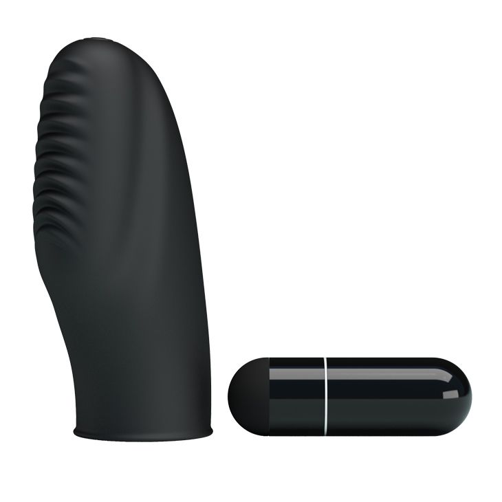 Вибростимулятор на палец Stanford. Из нежного силикона, с бороздками для лучшего воздействия. Батарейки в комплекте (3хLR41).