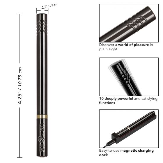 Hidden Pleasures – бесшумный ультратонкий вибратор, сочетающий в себе изысканный внешний вид и мощную стимуляцию. Он изготовлен из безопасных, не содержащих фталатов, хорошо проводящих вибрацию материалов. Сильный мотор обеспечивает 10 режимов вибрации. Благодаря необычной стилизации и компактному размеру игрушка станет идеальным спутником в любой поездке и не вызовет лишних вопросов. Вибромассажер универсален и подходит как для внешней точечной стимуляции, так и для внутренней. Управление осуществляется с помощью одной встроенной в основание кнопки. Чтобы включить или выключить игрушку, необходимо нажать и в течение трех секунд удерживать кнопку питания. Вибромассажер заряжается через USB и может быть подключен практически в любом месте. С помощью удобного и стильного зарядного устройства в виде бокса, полная зарядка занимает всего час времени. Время зарядки - 1 час. Время работы - 1,5 часа.