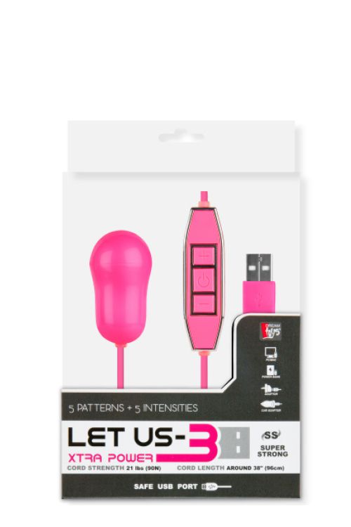 Розовый вибростимулятор с питанием от USB LET US-B 10 RHYTHMS BULLET LARGE PINK. Длина шнура - 96 см.