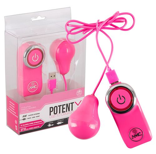 Розовое виброяйцо с контроллером POTENT USB FOR ORGASM. Яичко работает от USB, но может использоваться и в паре с контроллером. Длина провода - 96 см.