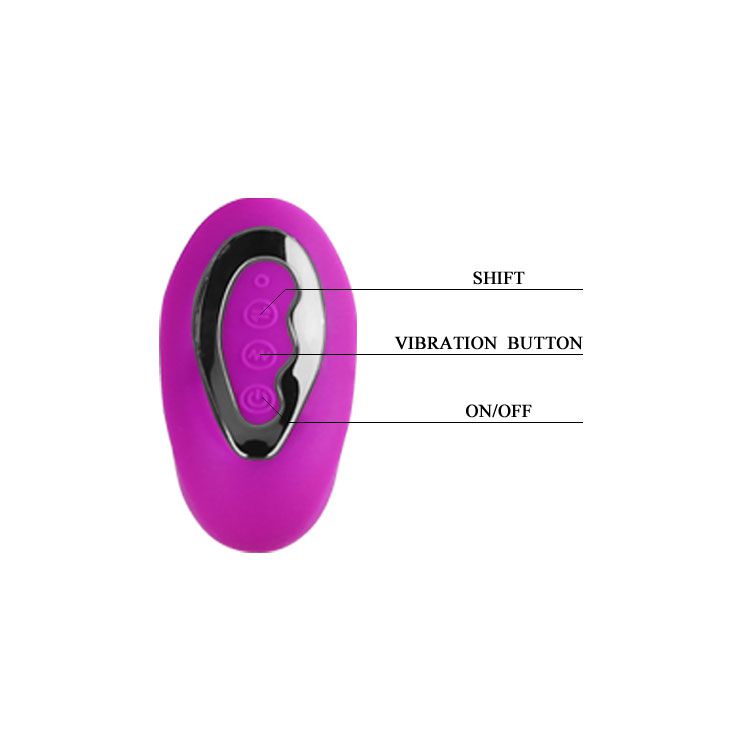 Лиловый силиконовый вибромассажер с дистанционным управлением и 12 функциями вибрации. Имеется петелька для удобного введения игрушки в вагину. Шелковистая на ощупь поверхность. Вибратор полностью водонепроницаемый. Управляется пультом с функцией Air Pressure Control, т.е. изменение вибрации происходит от нажатия на подушечку пульта. Рабочая длина - 7 см.