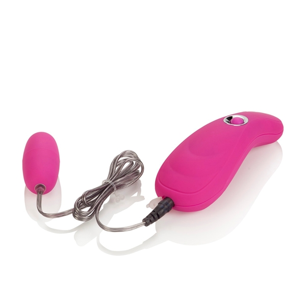 Вибростимулятор розового цвета с выносным пульом. Имеет одну вибропулю для стимуляции различных эрогенных зон. Имеет две скорости вибрации, переключающиеся при помощи удобной кнопки на пульте. Вибропулю можно отсоединить и использовать игрушку как массажер для тела. Изготовлен из пластика, покрытый бархатистым сатиновым покрытием. Работет от двух батареек типа АА (в комплект не входят)