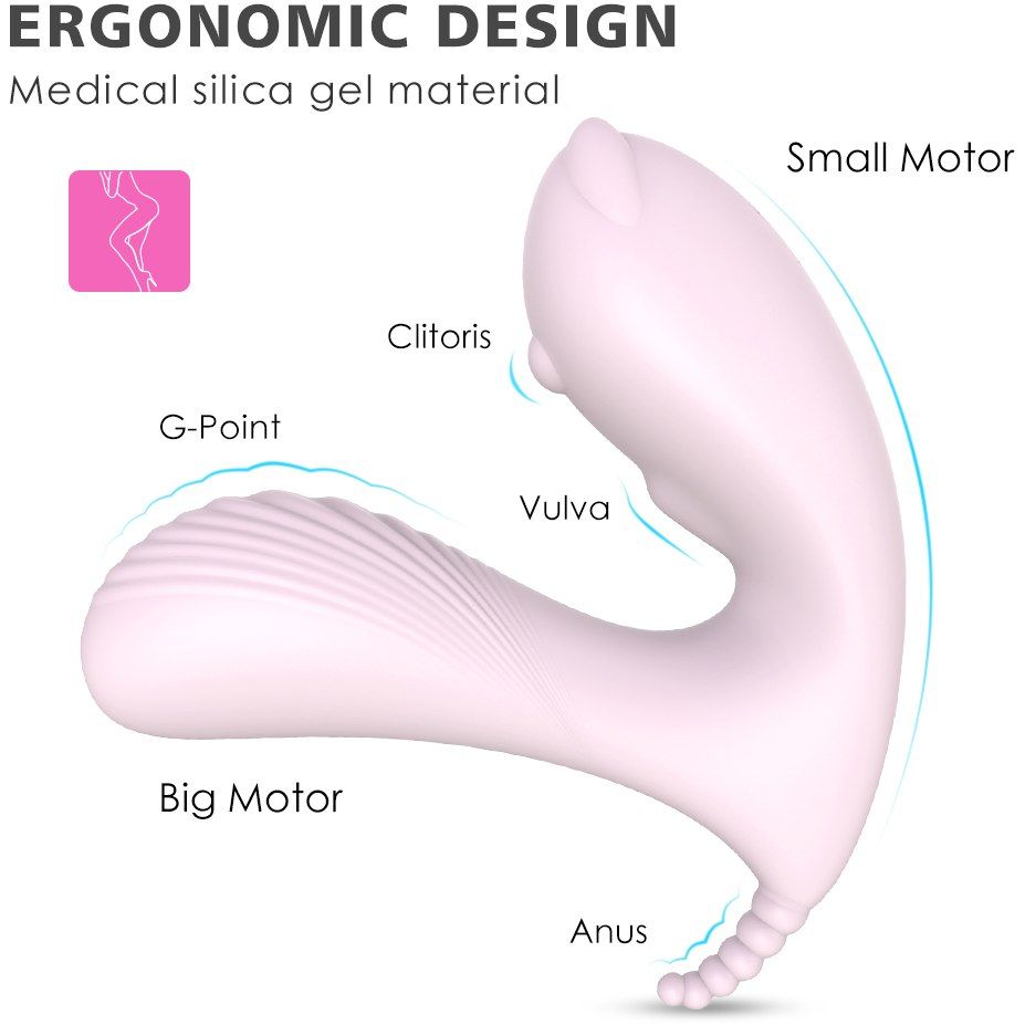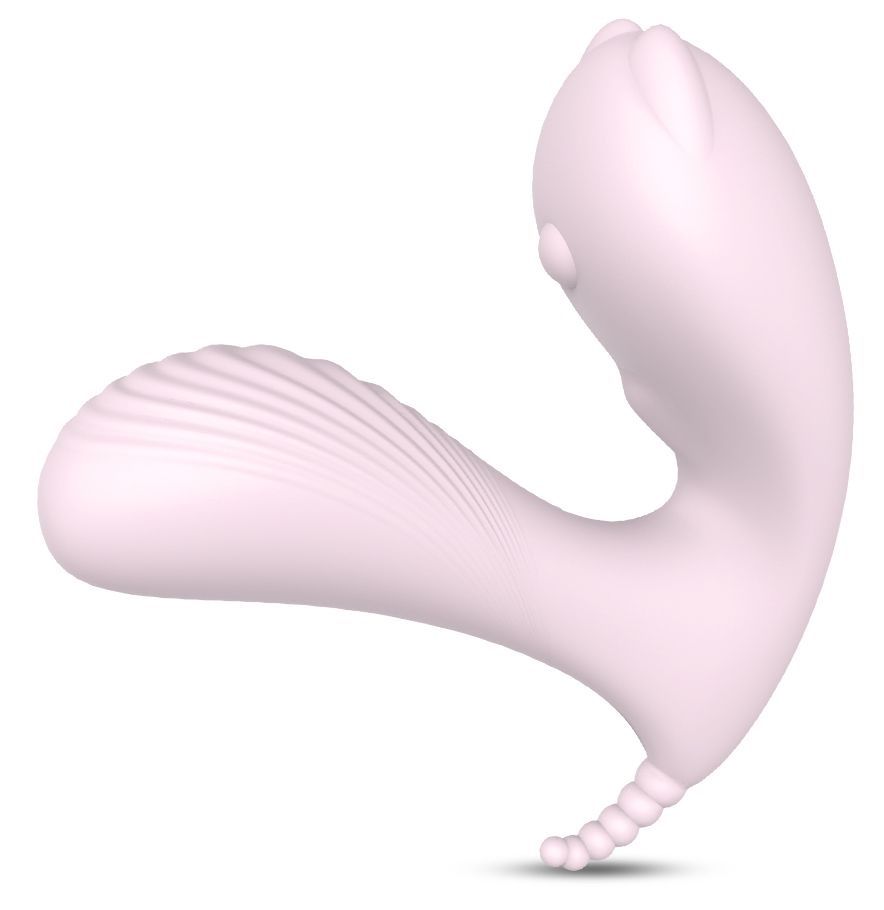 Нежно-розовая вибропробка CARA с клиторальным отростком и пультом ДУ. Идеальная для одновременной стимуляции точки Джи и клитора. Дальность действия пульта - до 10 метров.