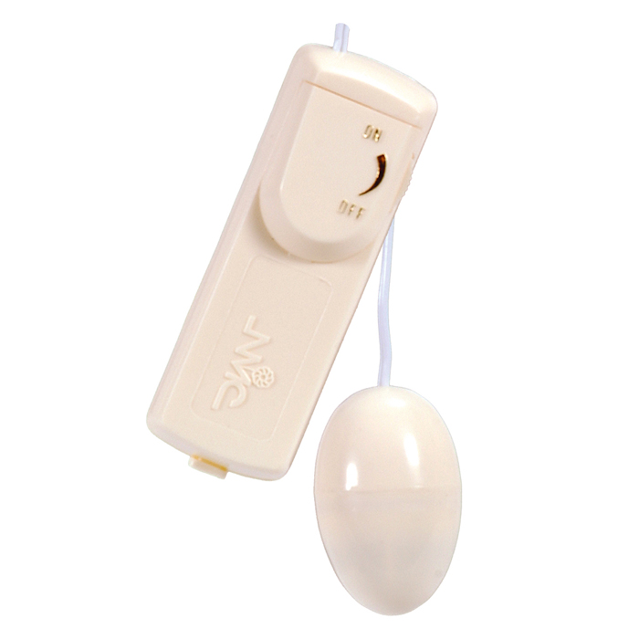 Белое виброяйцо с выносным пультом управления. Скорость вибрации плавно регулируется при помощи ролика.
