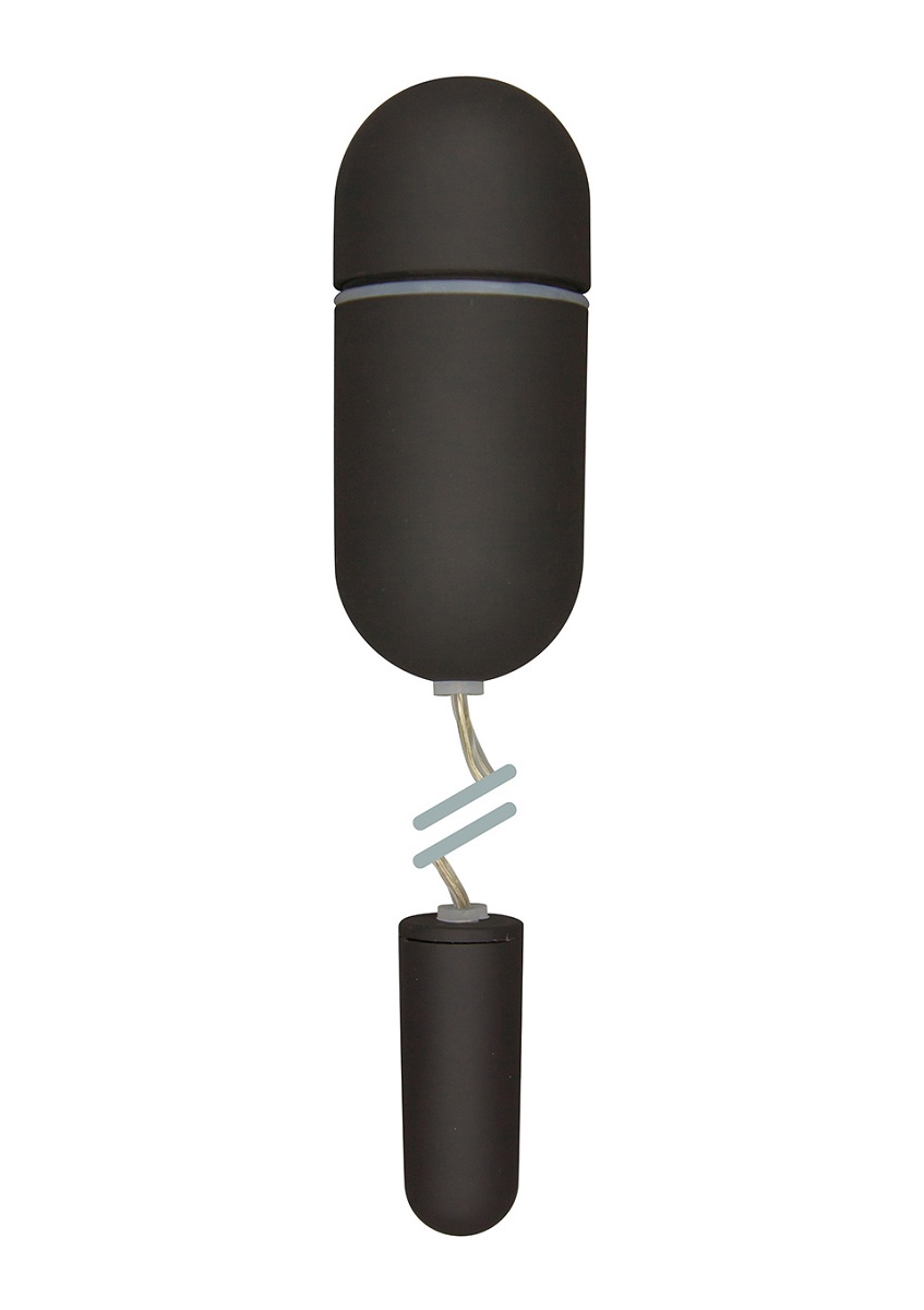 Комплект,состоящий из виброяйца и вибропули черного цвета с выносным дистанционным пультом. Изготовлены из медицинского пластика с с покрытием Soft - очень приятным на ощупь. Пульт украшен стразами. Длина виброяйца - 7 см,диаметр - 3 см. Длина вибропули - 3,5 см, диаметр - 1,5 см. Работает от 3-х батареек типа N (идут в комплекте).