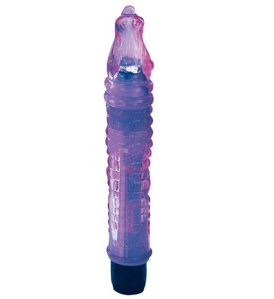Фиолетовый гелевый вибратор в форме крокодильчика. Водонепроницаемый.