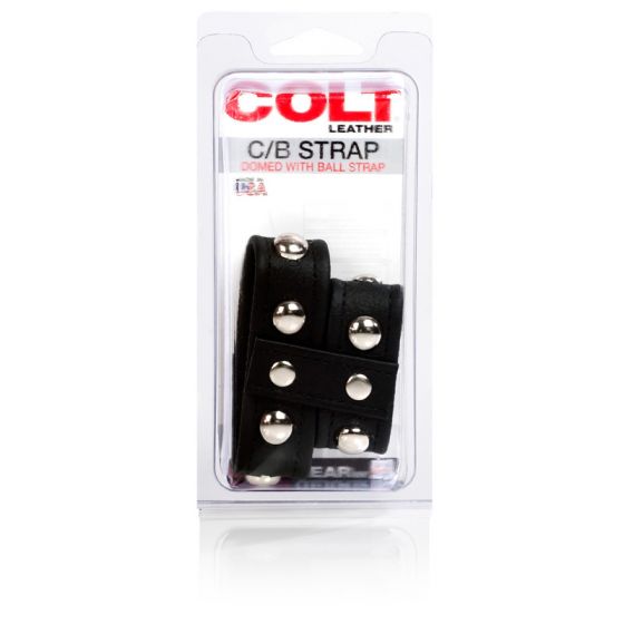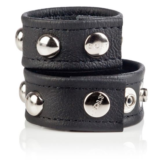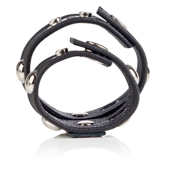 Черная кожаная утяжка на пенис и мошонку. Длина большого кольца - 20 см. Длина малого кольца - 16 см.