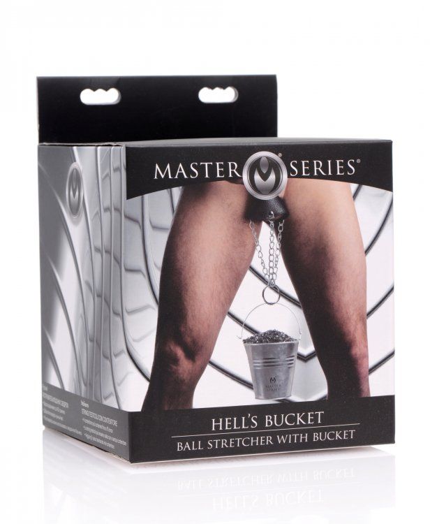 Оттягивать мошонку в сексуальных играх можно с помощью Master Series Hells Bucket Ball Stretcher! Фиксация-парашют из искусственной кожи крепится на мошонку, на цепи можно подвесить ведерко из комплекта и утяжелять его любыми наполнителями (твердыми или жидкими). Используя жидкие утяжелители, можно дополнительно дисциплинировать саба, наливая все больше и больше, при этом давая задание не разлить содержимое ведерка. Сколько может выдержать ваш саб? Отверстие для мошонки - 2,5-3,8 см. Длина цепи - 10,2 см.