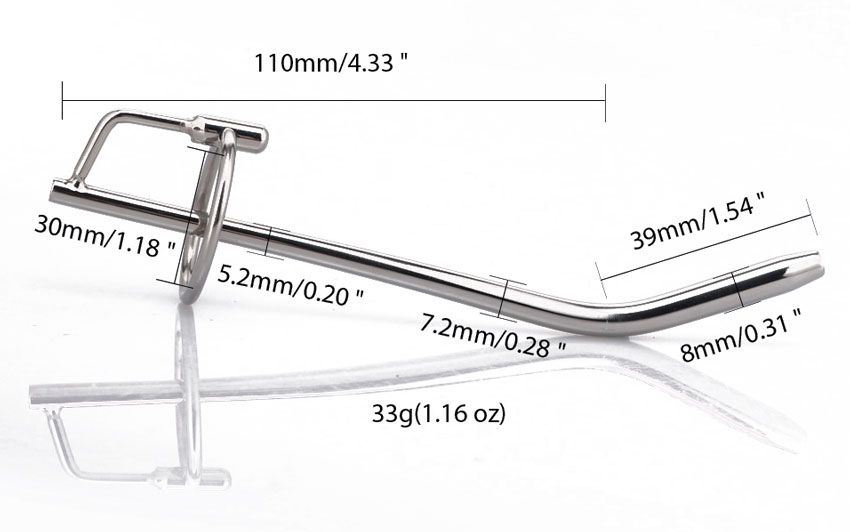 Уретральный катетер для стимуляции уретрального канала. Мужской катетер изготовлен из высококачественной медицинской стали, имеет рельефную структуру. Минимальный диаметр - 0,52 см. Вес - 33 грамма.