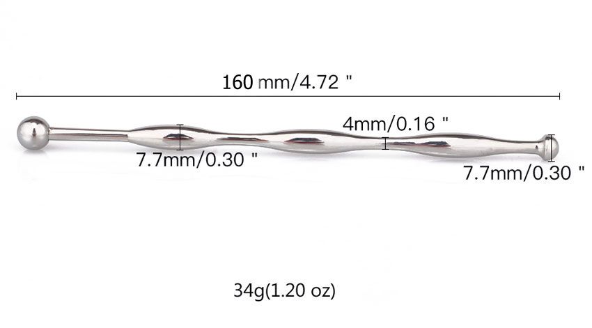 Уретральный катетер для стимуляции уретрального канала. Мужской катетер изготовлен из высококачественной медицинской стали, имеет рельефную структуру. Минимальный диаметр - 0,4 см. Вес - 34 грамма.
