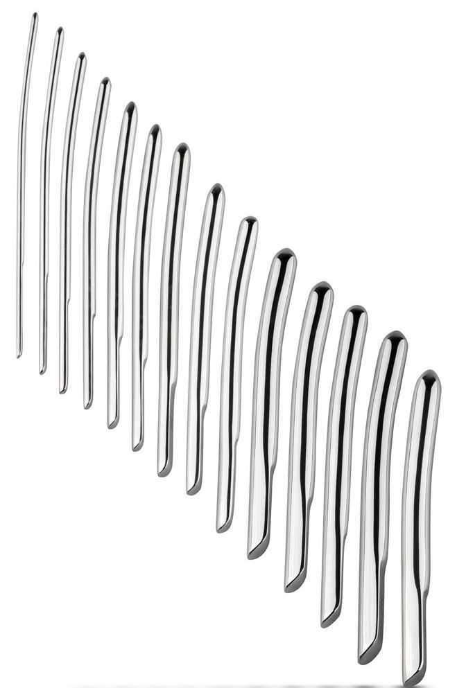 14 уретральных стимуляторов, изготовленных из нержавеющей стали разного диаметра. Все стимуляторы имеют плоский конец, другой конец закруглен для введения в мочеиспускательный канал. Набор поставляется в бархатном жестком чехле-кейсе на молнии. Рабочая длина - 13,7 см. Диаметры стимуляторов - 1,7, 1,6, 1,5, 1,4, 1,3, 1,2, 1,1, 1, 0,9, 0,8, 0,7, 0,6, 0,5 и 0,4 см.