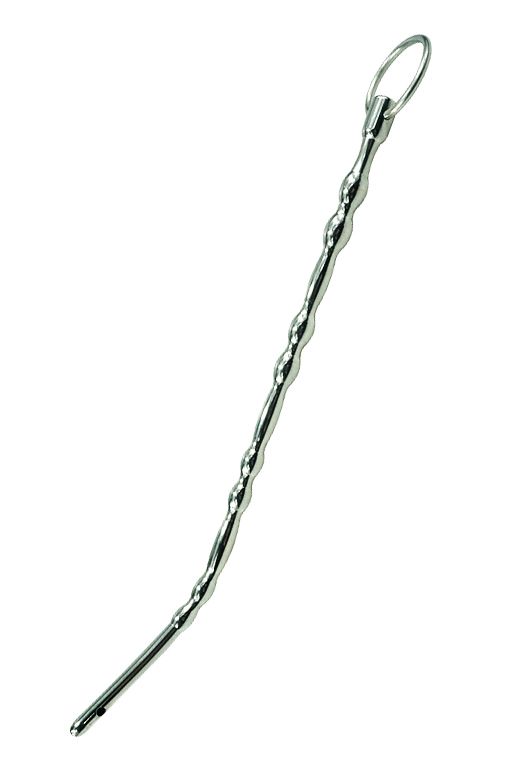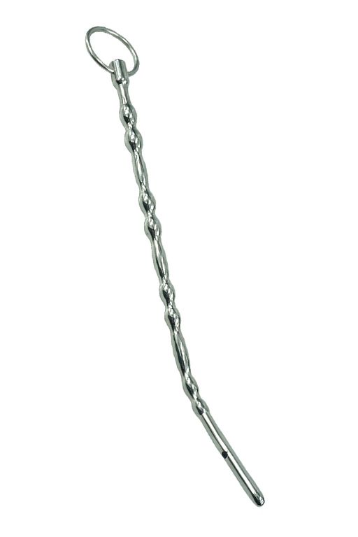 Изогнутая полая уретральная струна из металла. Имеет 2 отверстия на разной высоте по боковым сторонам, снизу проникающего стержня и 1 отверстие в вершине.