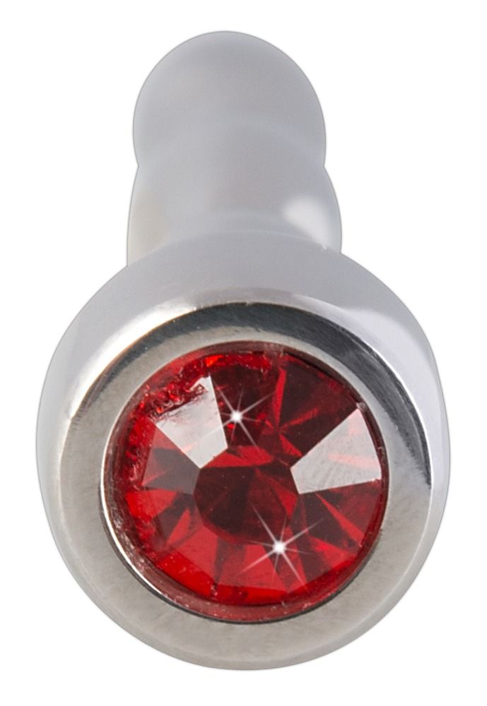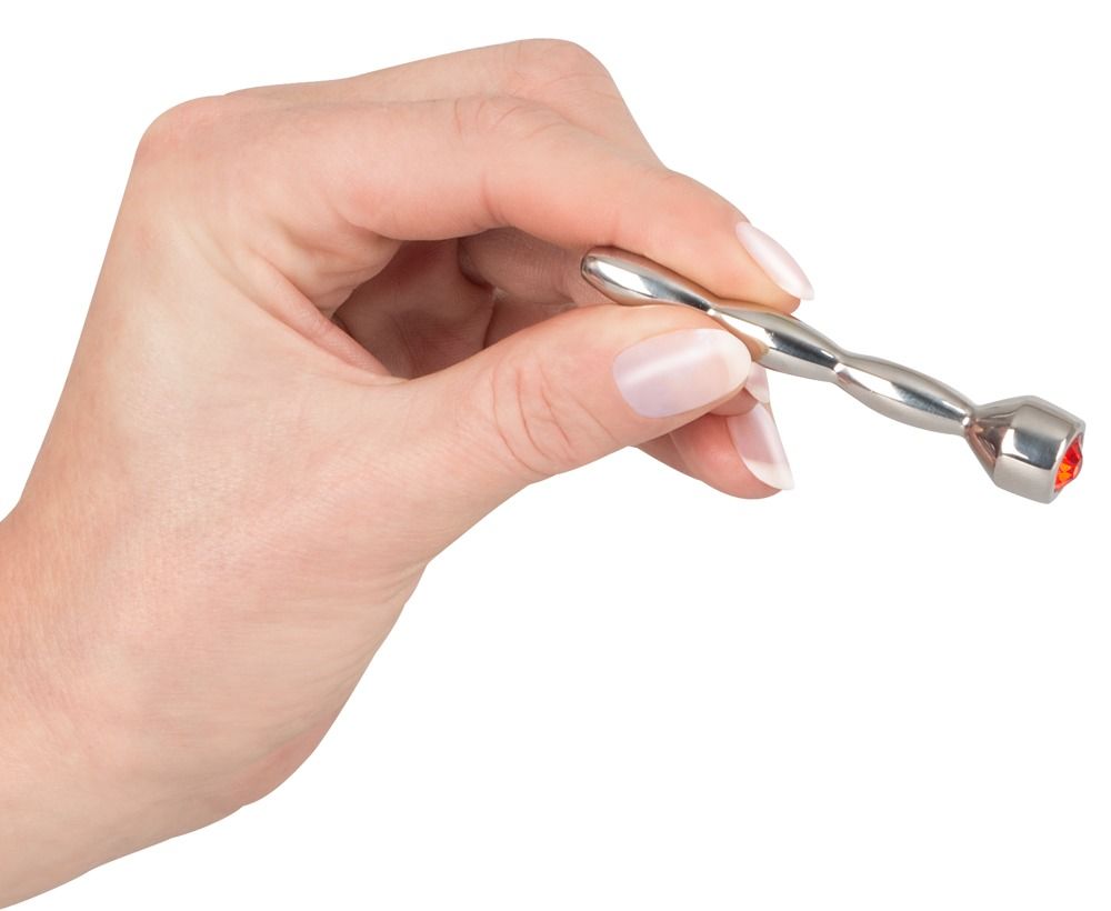 Серебристый уретральный плаг с кристаллом в основании. Фигурный и идеально гладкий. Рабочая длина - 5,5 см.