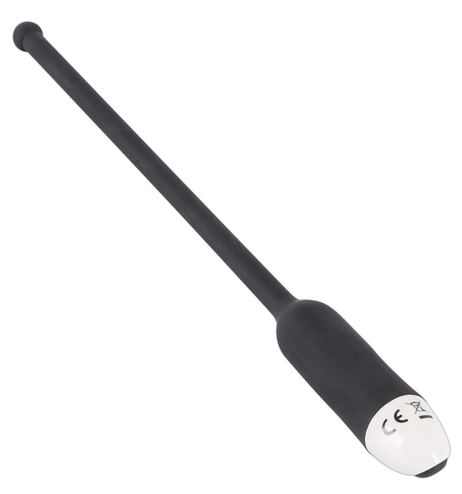 Чёрный силиконовый вибродилятор для уретры. Рабочая длина - 18,7 см. Минимальный диаметр - 0,8 см.