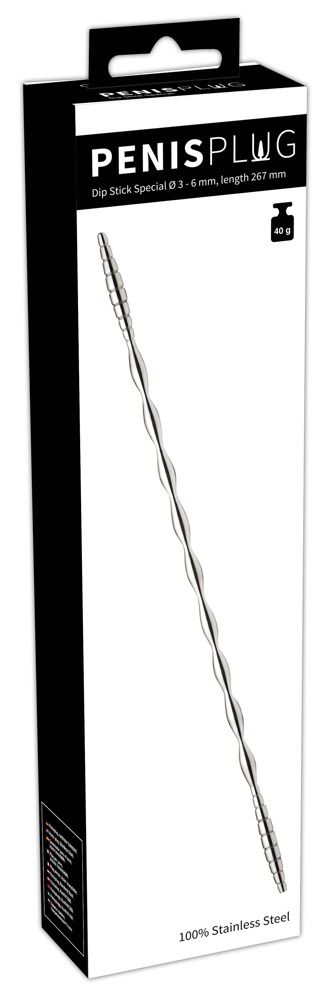 Серебристый уретральный плаг Dip Stick Special. Минимальный диаметр - 0,3 см.