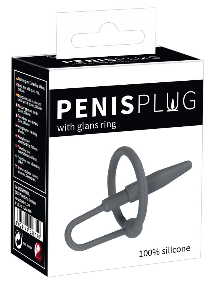 Серый уретральный плаг с силиконовым кольцом под головку Penis Plug. Диаметр кольца - 3 см. Длина плага - 4,5 см., диаметр - 0,8 см.