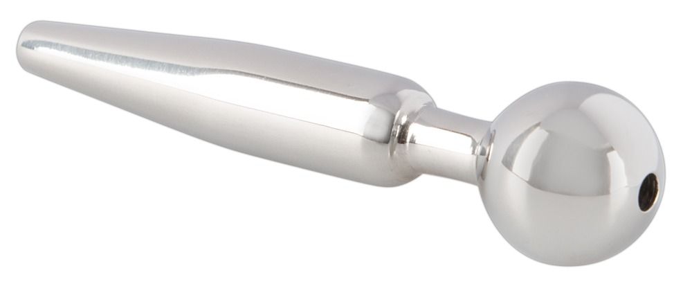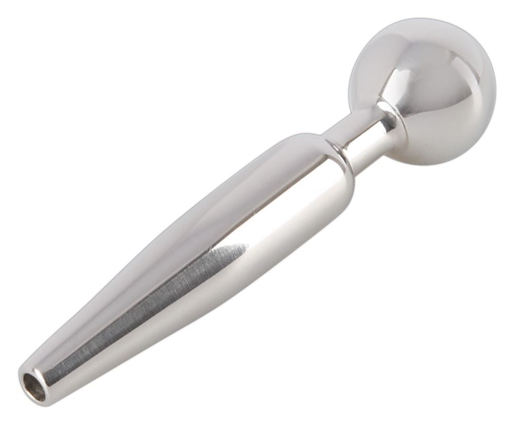 Серебристый гладкий уретральный плаг Penisplug Come Thru. Рабочая длина - 5,2 см. Минимальный диаметр - 0,5 см.