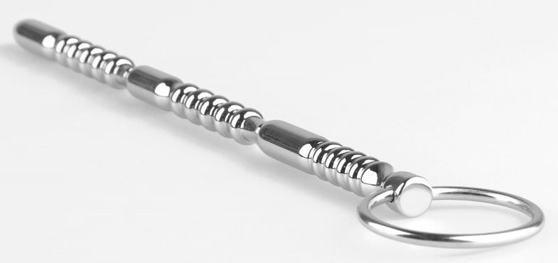 Серебристый фигурный уретральный стимулятор с кольцом Сумерки богов 744-05 PP DD