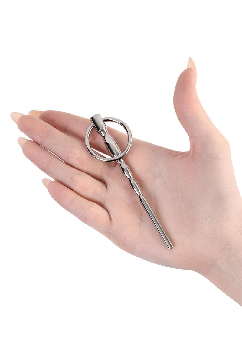Уретральный плаг-елочка с кольцом в основании. Одна из немногих полых игрушек. Два сменных кольца. Рабочая длина - 9 см. Минимальный диаметр - 0,4 см. Диаметр колец - 2,5 и 3 см.