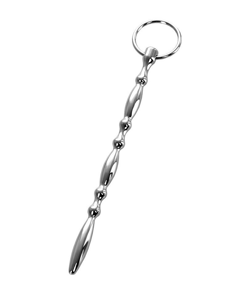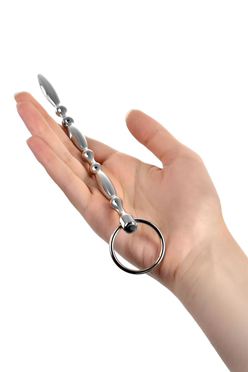 Металлический уретральный плаг с кольцом в основании. Фигурная форма дает дополнительную стимуляцию уретры. Рабочая длина - 16 см.