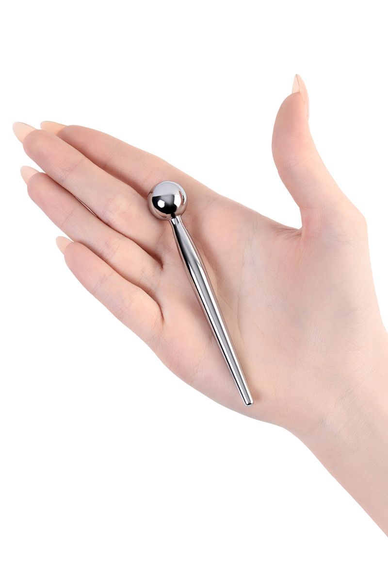 Уретральный плаг постепенно расширяющейся конической формы с большим шариком-ограничителем. Благодаря своей гладкой поверхности и небольшому размеру является идельным вариантом для начинающих. Рабочая длина - 7,5 см. Минимальный диаметр - 0,3 см.