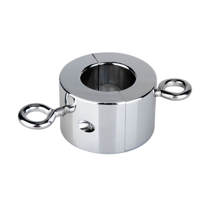 Одно из самых популярных приспособлений для СВТ - болстретчер (дословно растяжитель мошонки). Две половины кольца соединяются двумя двухсантиметровыми болтами. Петли по бокам вкручиваются в кольцо. При необходимости можно открутить. Толщина кольца - 3,6 см. Внутренний диаметр кольца - 3,5 см. В комплекте: растяжитель мошонки, ключ.