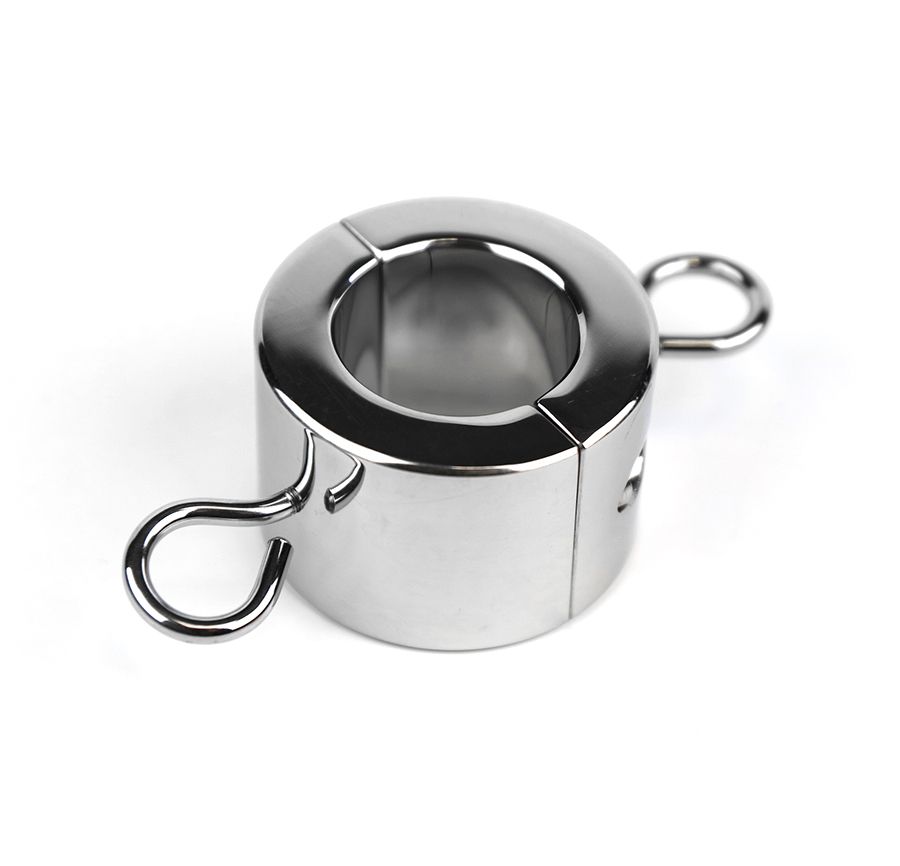 Более широкий зажим на мошонку. Для удобства раскручивается на 2 части с помощью специального ключа, который идет в комплекте. Дополнительно, с двух сторон, в зажим встроены 2 крючка, на которые можно подвесить дополнительные грузила. Сделан из металла, поэтому его легко чистить. Внутренний диаметр - 3,5 см. Толщина - 4 см. Вес - 550 гр.