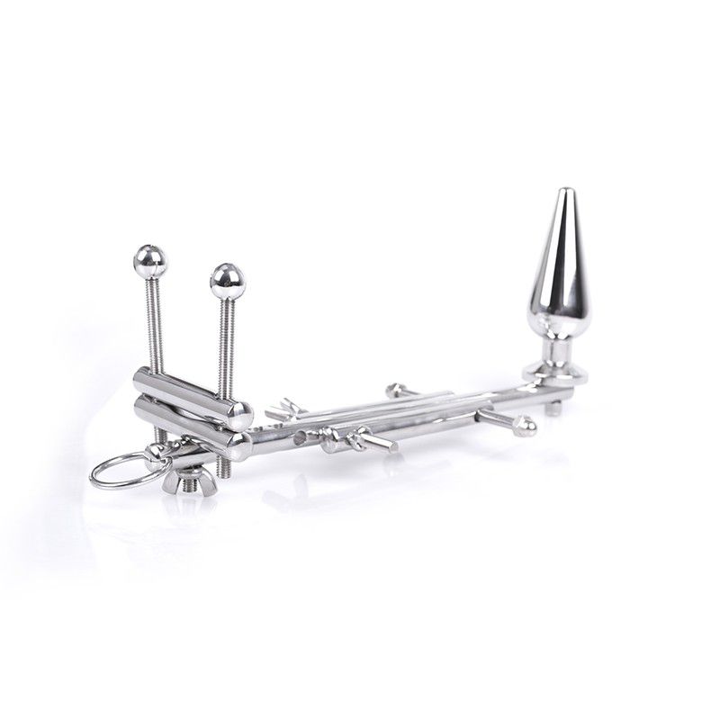 Устройство для растягивания мошонки и препятствования возникновению эрекции оснащено также на одном конце анальной пробкой. Теперь-то вы покажете партнеру, что ему позволяется, а что - нет!
