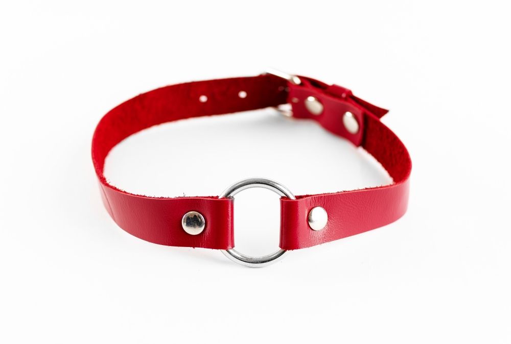 Элегантный чокер и натуральной кожи красного цвета, декорирован металлическим кольцом. Удобно регулируемая длина. Нежная натуральная кожа очень комфортна в использовании. Яркий и сексуальный аксессуар, который подчеркнет вашу индивидуальность. Ширина ремня - 2 см. Диаметр кольца - 3 см. Обхват - 30-40 см.