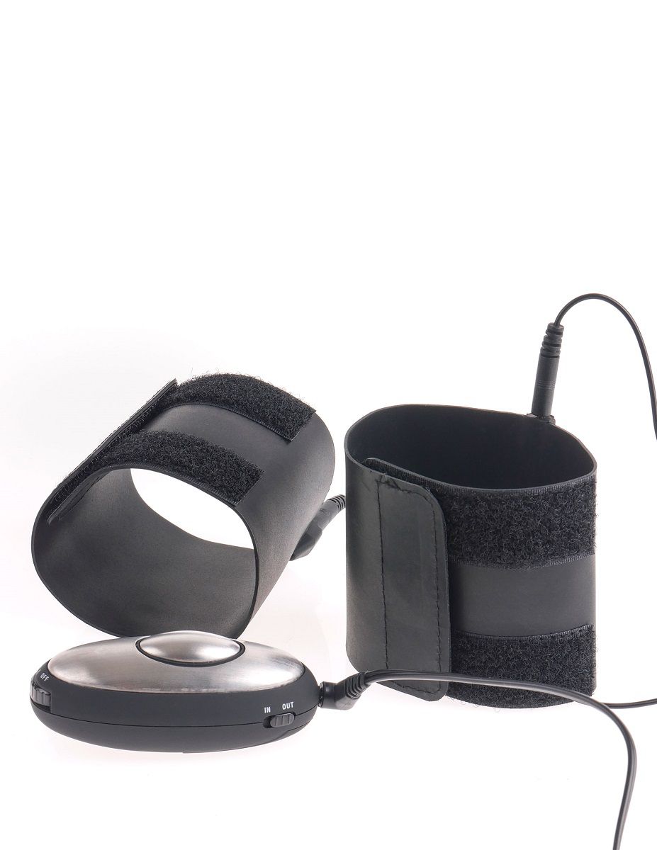 Эти виниловые манжеты на липучках откроют вашей паре манящий мир электросекса. Достаточно надеть их на запястья, повернуть колёсико пульта на включение и нажать на овальную сердцевину, чтобы по ладоням побежали ласкающие и одновременно кусающие кожу электрозаряды. Ваши руки станут настоящим электростимулятором, который усилит приятные ощущения от прикосновений к телу или во время мастурбации. Пульт работает от батарейки CR 2032, которая входит в комплект. Закрытая маска на глаза в комплекте.