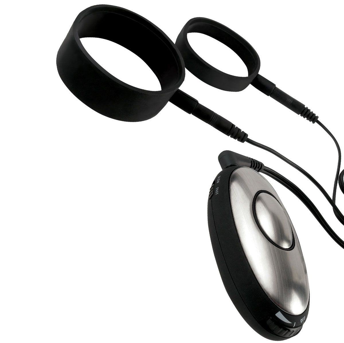 Шоковая терапия для мужчин. Идеально подходит как для начинающих так и для истинных ценителей. Удобный жгут легко регулируется, чтобы соответствовать большинству размеров, с большим ремнем для обхвата мошонки и меньшим - для члена. Компактный блок управления посылает электрические импульсы в жгут. Выберите установку и контролируйте интенсивность. Переключайте между SLOW или FAST для контроля частоты ударов. Работает от одной батарейки 3V CR 2032 (в комплект не входит). В комплекте: электростимулятор, маска на глаза.