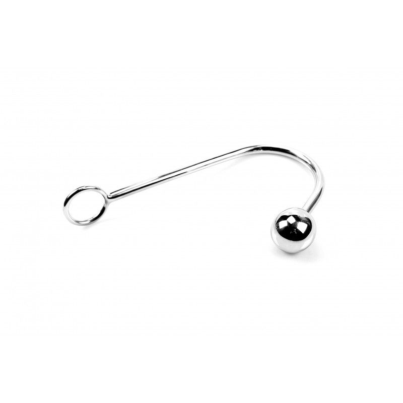 Наказание - это не только причинение боли или унижение. Иногда достаточно подвесить партнера и игнорировать его мольбы о пощаде. Анальный крюк выполнен из медицинской стали. Очень приятный и прохладный на ощупь. Диаметр шарика - 3 см. Диаметр кольца - 3,5 см.