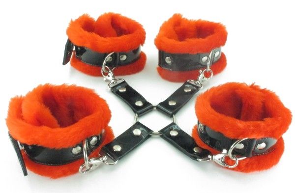 Если вам нравится доминировать во время сексуальных игр, то этот стильный набор, просто создан для удовлетворения именно таких потребностей. Изящный секс-девайс не оставит равнодушной даже очень требовательную партнершу. Благодаря безопасным материалам, бандаж не травмирует кожу и не причиняет дискомфорта. Изделие украшено роскошным мехом и лаковыми деталями, что особенно привлекает девушек. Оковы соединяются между собой карабинами.