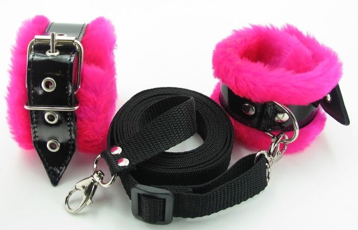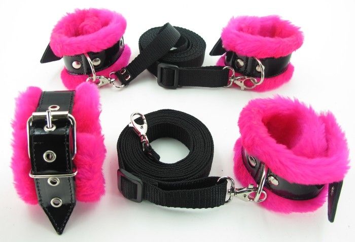 Набор для пристегивания к кровати с розовым мехом BDSM Light