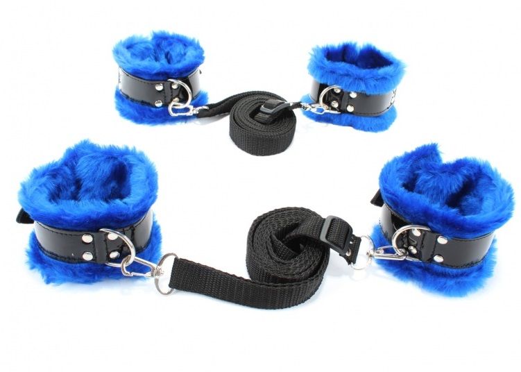 Набор на кровать с синим мехом BDSM Light БДСМ арсенал 760009ars