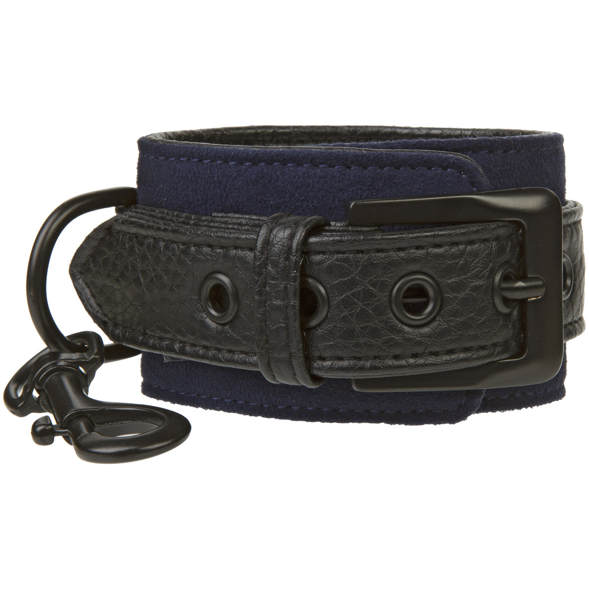 Наручники BLACK BLUE HOG TIE сделаны из мягкой кожи. В комплект входит две пары наручников на руки и на ноги, которые соединяются между собой черной металлической цепочкой, что позволяет полностью фиксировать человека в определенном положении. На каждом браслете имеется металлический карабин, для удобного использования аксессуара. Длина цепочки - 56 см. Ширина ремней браслетов - 6 см.