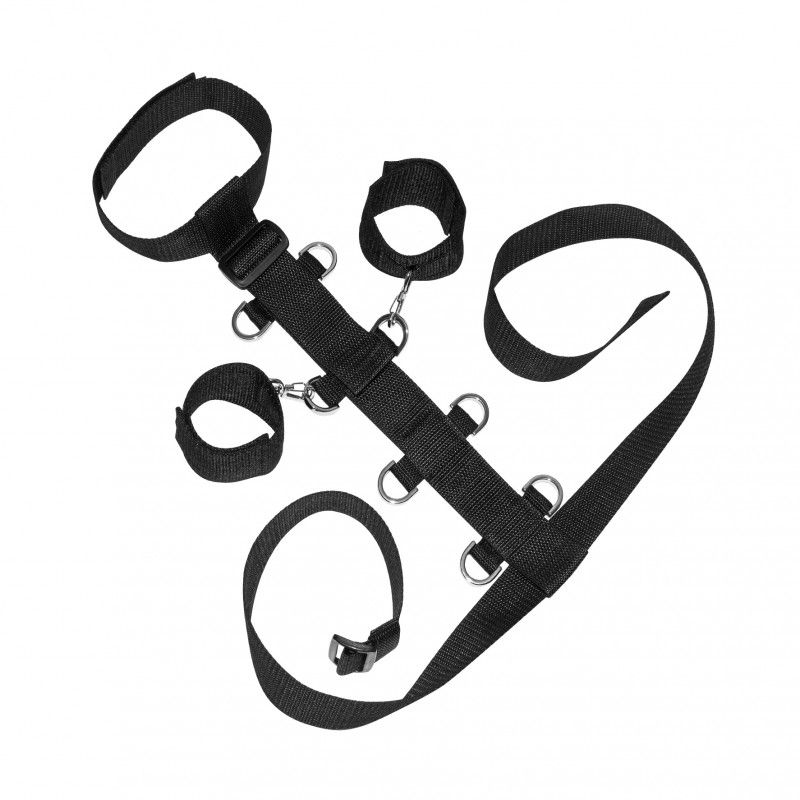 Преимуществами набора для фиксации являются: -Надежность. Для изготовления аксессуара применяются прочные, износостойкие и устойчивые к разрыву материалы. Крепкие ремни и металлические крепления способны выдерживать любые нагрузки. -Безопасность. Фиксатор имеет мягкую эластичную структуру, после их использования на теле не остается никаких следов. -Универсальность. Ошейник и наручники легко регулируются по обхвату при помощи застежек-липучек. Несколько колец на ленте, соединяющих ошейник и пояс, позволяют фиксировать наручники в 4-х положениях по высоте. Пояс-фиксатор на талию выполнен в виде ремня. Благодаря пряжкам Вы легко сможете отрегулировать аксессуар по необходимому Вам объему и длине, в зависимости от роста и размера. Ширина ошейника - 4 см., обхват - 31-41 см. Ширина наручников - 5 см., обхват - 14-22 см. Ширина пояса - 4 см. Обхват талии - 60-120 см. Ширина ленты с кольцами - 4 см. Длина ленты с кольцами - 35-48 см.