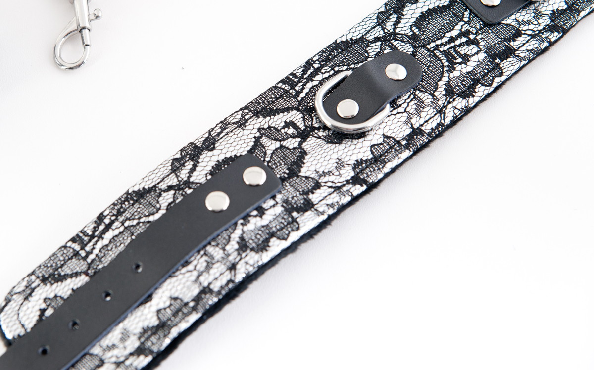 Серебро и кружево - роскошное сочетание, чтобы в любой ситуации чувствовать себя неотразимой. С этим комплектом ты обездвижена и находишься в полной власти своего господина.
