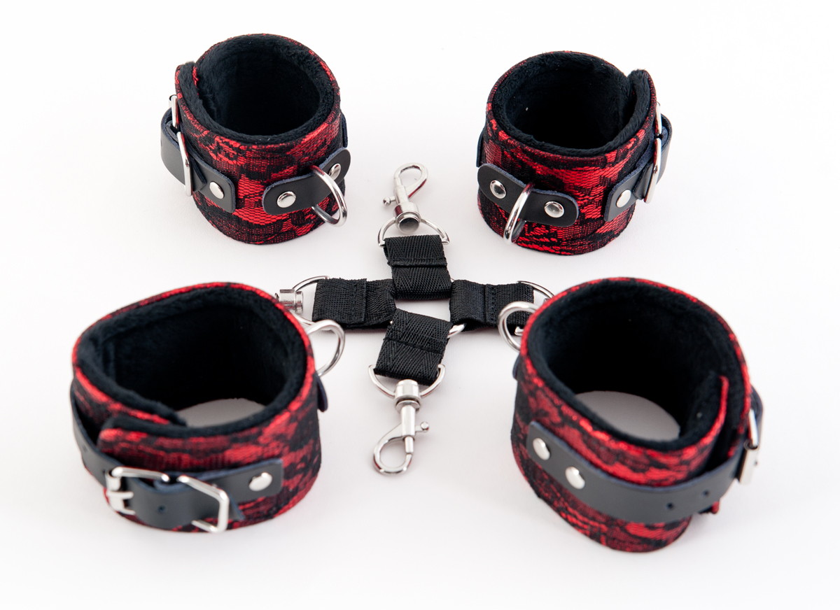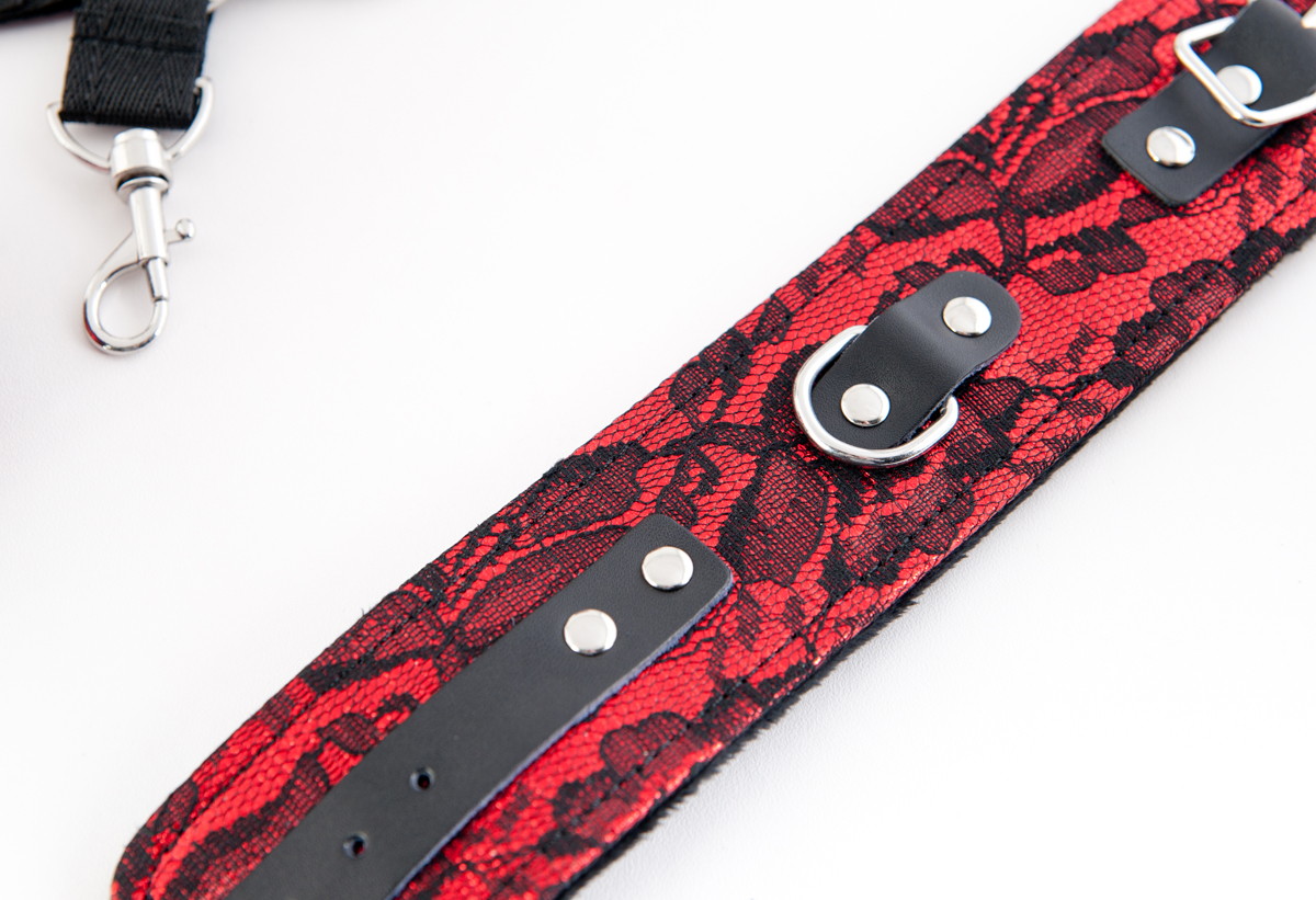 Изящное черное кружево на ярко - красном фоне. Более сексуального сочетания не существует. С этим комплектом ты обездвижена и находишься в полной власти своего господина.